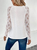 Lace Eyelet V-Neck Long Sleeve Blouse