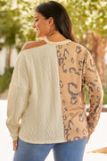 Plus Size Leopard Color Block Long Sleeve T-Shirt