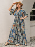 Plus Size Printed Half Sleeve Wide Leg Jumpsuit