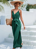 Tie Belt Spaghetti Strap Slit Jumpsuit